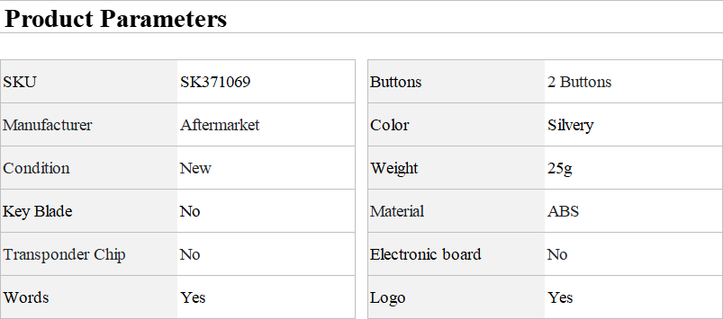 Notice: • The item is only a empty key shell which is without chip,PCB board and battery inside.